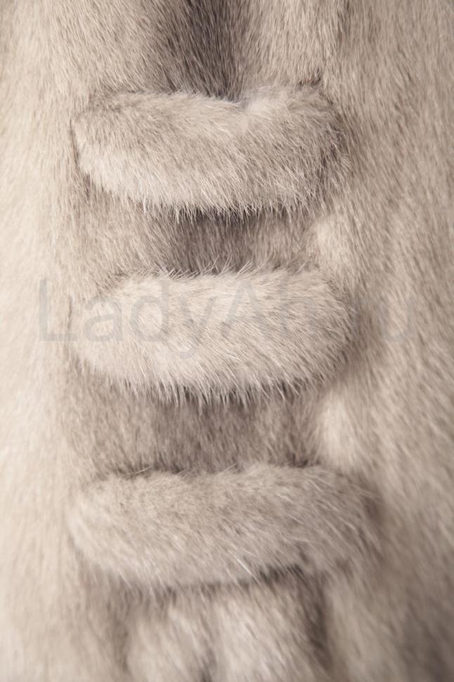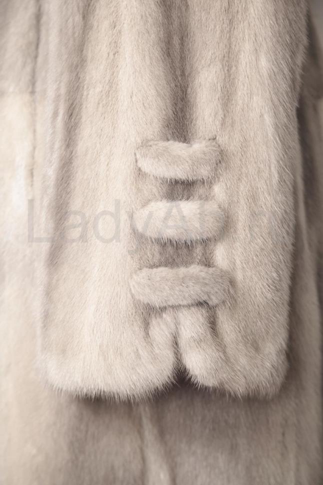 Воротник застегивается в двух положениях(см. фото), на рукавах декорации из меха.