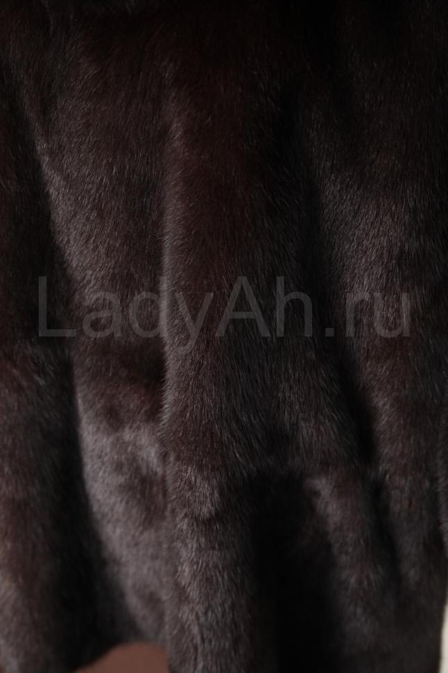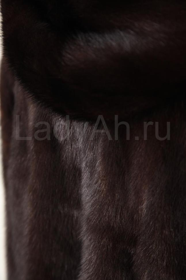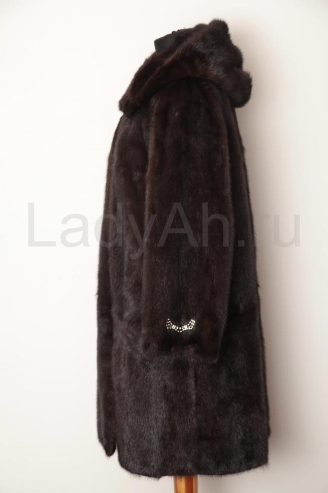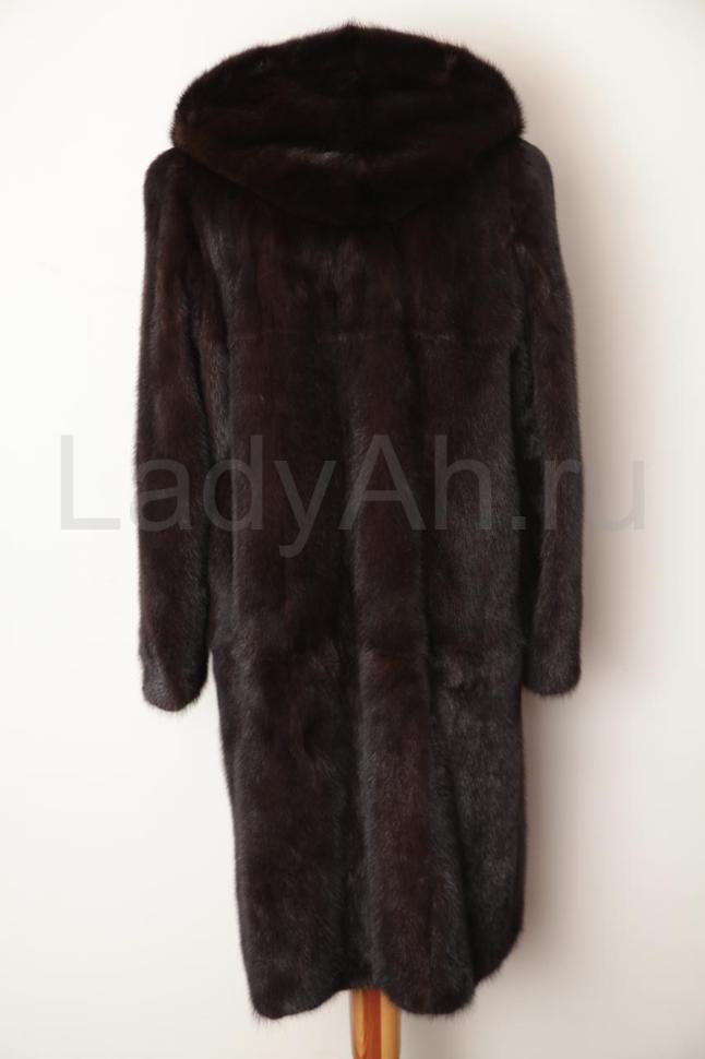 Цельная норковая шуба классического кроя с двусторонним норковым капюшоном. Цвет горький шоколад. Состояние новой вещи.
